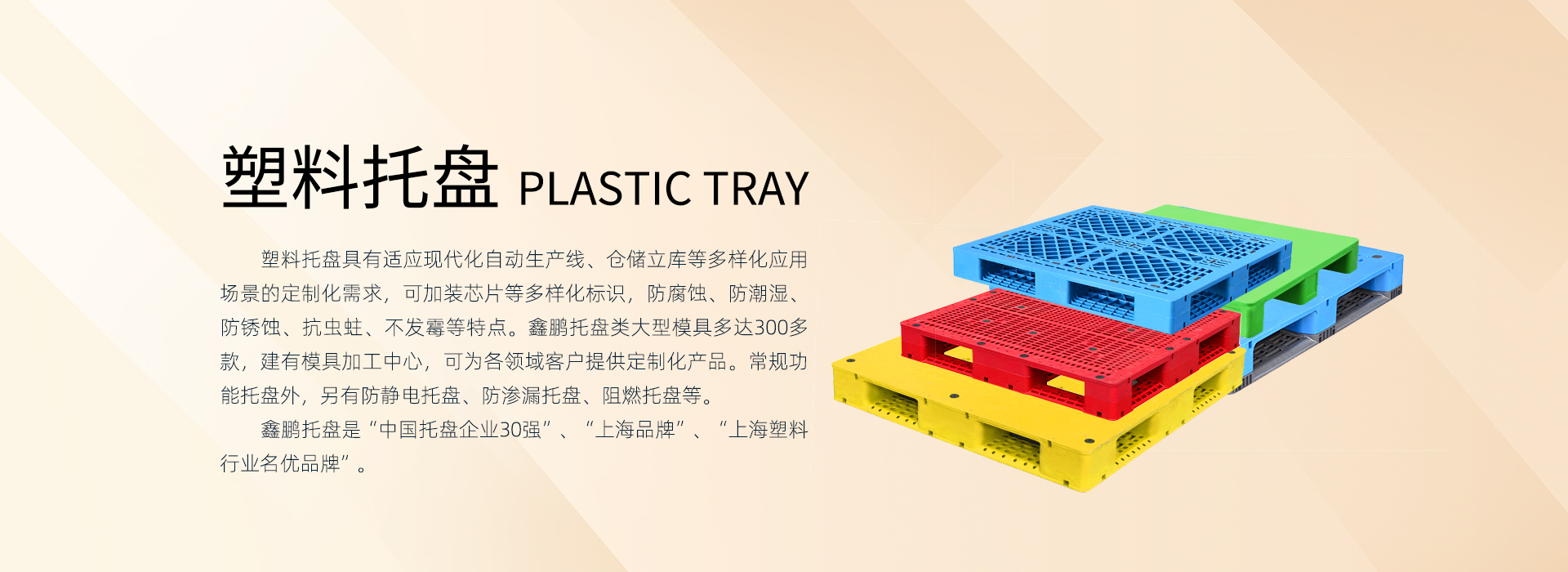 上海鑫鵬塑料創始于1987年,始終專注深根塑料産業鍊,業務闆塊包括:塑料原料貿易、塑料制品研發制造(塑料托盤、塑料箱筐、卡闆箱、環衛桶等)。現全國有5個生産基地:上海2個、四川1個、江蘇2個。